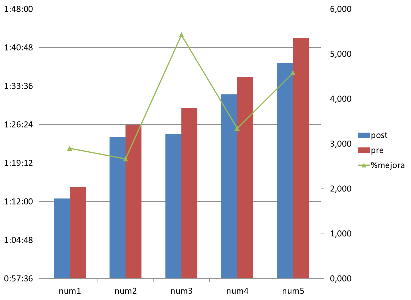 …y finalmente cuales fueron las mejoras de 6 semanas de 48 km/sem medios, de un 15 % km sem dedicado a zona umbral e incluso un 8% km sem dedicado a velocides cercanas a potencia aerobica, zona a3, y sin realizar apenas rodajes extensivos(mas de 60′),por no decir ninguno…
