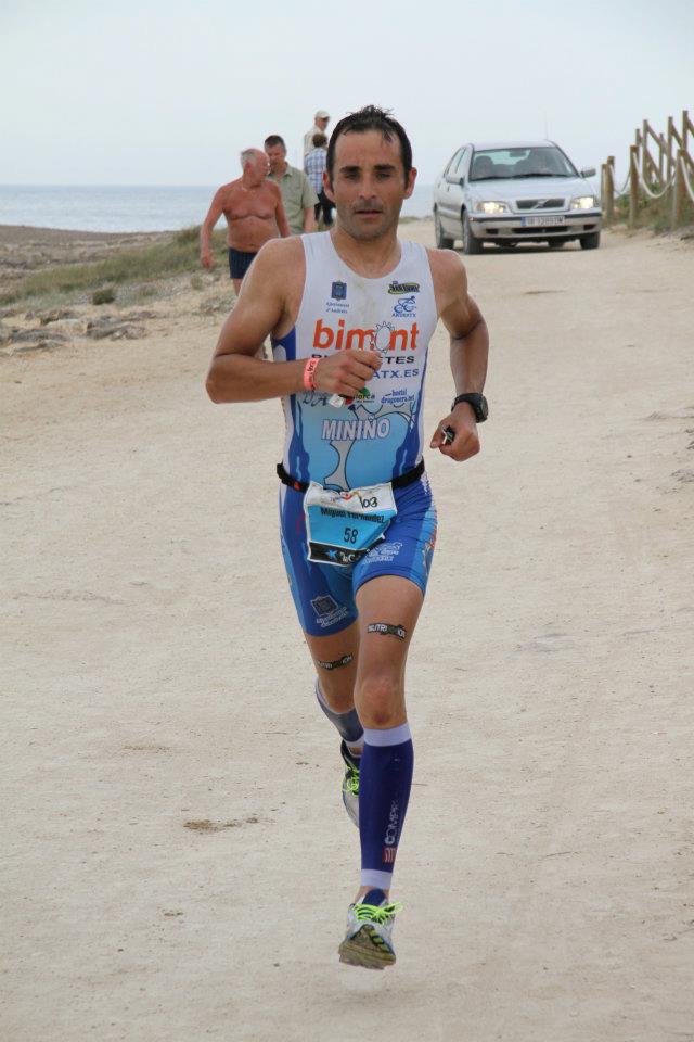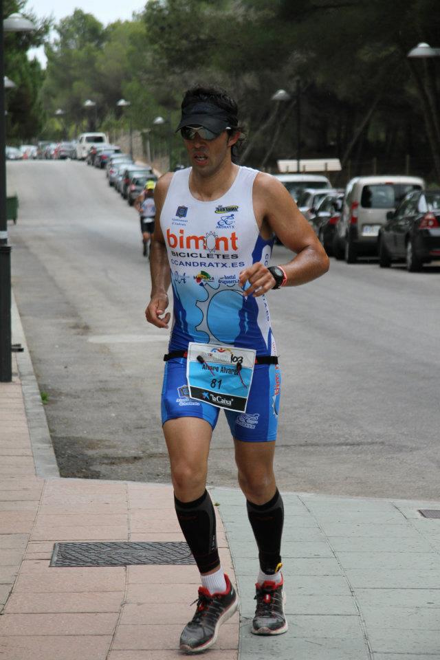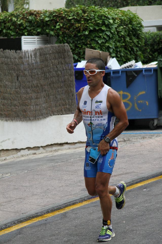 ..triatlon doble olimpico, dominado desde la salida por Carlos Lopez, en meta con 4h18′, con los mejores parciales a en natación, saliendo ya con 3′ sobre el 2º y 3º, Toni Peris, y Juan Antonio Perez, y metiendo 2′ mas en el segmento ciclista para bajarse a correr con tranquilidad.