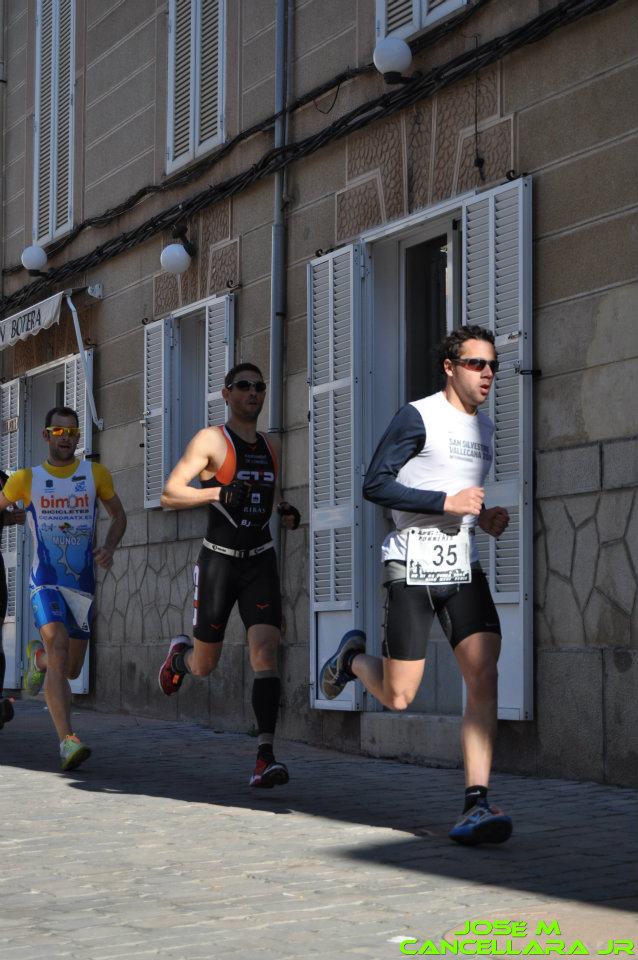 ..la prueba constaba de 5 vueltas de 5km, 3 vueltas de ciclismo de 7km y 2 km mas finales, en la 1º carrera, ya en el 1º km se formo un grupo donde ibamos 5, con Fidalgo, quien salió a entrenar y prefirio rodar comodo con nosotros, Juanan, Biel,yo y Paco Ruiz, que lo hacia por relevos, el ritmo fue vivo toda la carrera y en un circuito duro marcamos un crono de 16’40”, en la ultima vuelta cambie el ritmo para probar, a pesar de que no tuve buenas sensaciones, pero siempre hay que tantear, y a este cam,bio le siguio uno de Biel, para entrar en box, 1º Biel, 2º Fidalgo 3º yo y 4º juanan y 5º Paco Ruiz, ya en el box, salgo 1º con la bici, pero nos juntamos en seguida y nos vamos en bici 4, Juanan,que iba alternando algun palo, con tirar, Fidalgo, quien fue todo el rato a 10 metros por detras, y Mario(relevo de Paco).