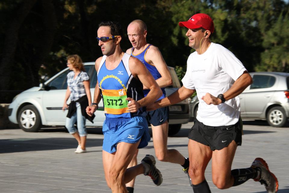..y aqui en Mallorca, excelentes resultados de nuestros deportistas en la prueba de 10km y media maraton de Calvia, con un gran Pablo Carmona, afinando para la san silvestre corriendo en progresion con 19’20”-18’10” para acabar en 37’30”. Gran resultado rambien de juame Crespi que rebajo 1’50” a su marca,haciendo 43’31”, asi como Nando Fortuny que rebajo ta,bien cerca de 2’40” su marca de la Tui haciendo 44’50”, en Calvia.