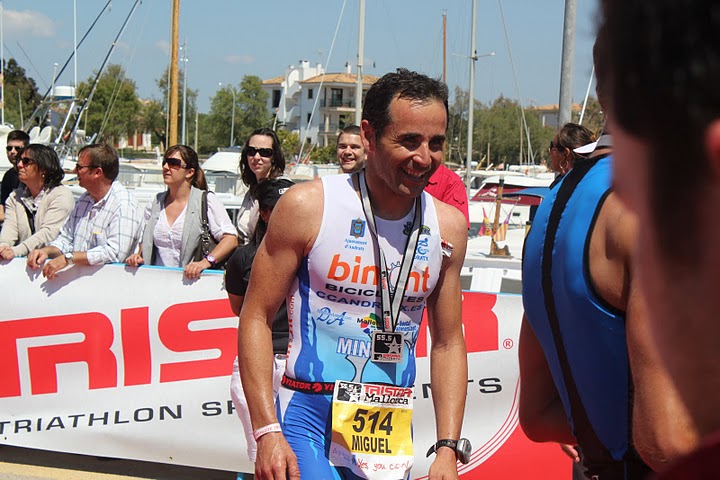…De salida, Miguel y yo dejamos que tanto Carlos, como Juanan, cojan el peso de la carrera, yo me situe detrás tras un 1º 500m progresivo y al 1º paso por el pueblo la carrera ya había hecho su selección, el primer grupo con Carlos, Miguel, Guerra J, Paco Ruiz, Juanan, y yo, hasta las cuestas del castillo, donde ahí, se quedarón Paco y Jose Guerra. En la bajada me coloque delante para intentar controlar un poco el ritmo, ya que nos quedaba otra vuelta mas, una pequeña, mis sensaciones volvieron a ser las de hacia 2 años, cuando consegui un punto de forma corriendo maravilloso, y decidi aprovechar este tesitura, para de nuevo lanzar la carrera y ayudar a Miguel a intentar hacer una nueva selección, para que en la bici hubiera entendimiento, ya que cuanta menos gente en los grupos mas se colabora. Asi fue, al iniciar la ultima vuelta, Miguel lanzó un cambio, al que yo di continuidad, sabia que estábamos haciendo sufrir a Juanan, quien se quedo cortado al final en boxes unos 25’’, al coger la bici yo vi en la 1º curva que no podría forzar, pero estaba contento de mi rendimiento y de haber ayudado a mi pupilo y amigo. En el sector de ciclismo, me fueron pasando los grupos, por delante Carlos y Miguel hicieron toda la bici juntos y se jugaron la carrera en un grandísimos Sprint final, casi con empate, aunque los jueces dieron vencedor a Miguel. Por detrás Juanan 3º y mas atrás, Tauler quien remontó desde mas atrás para acabar 4º…