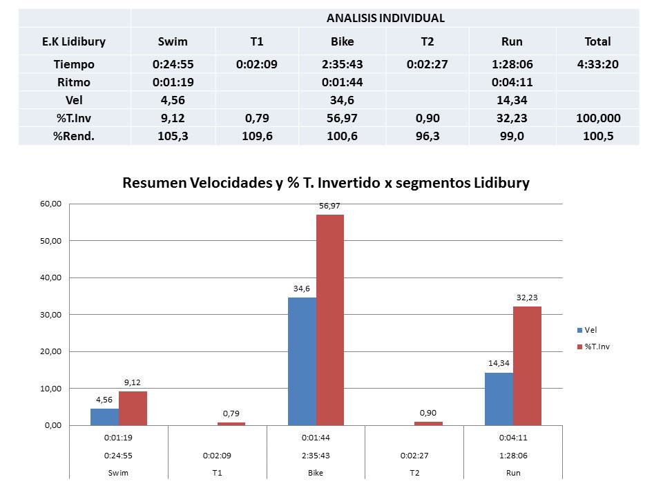 Y la ganadora Lidibury, sustento en la natacion y en la bici, ya que su nivel de carrera fue algo inferior al promedio de las top5, sobre un 1%, pero su nivel de natacion fue un 5% superior, que fue lo que le dio al final es escaso margen de victoria…