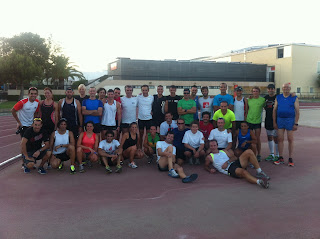 …el lunes pasado acudiamos al entrenamiento, como un dia mas cualquiera, un tarde mas a las 19:15 en la pista de principes de España , para darle forma real al entrenamiento diseñado por el mister, como siempre con ganas y alegrias, en los momentos del calentamiento, disertando sobre temas varios de actualidad, y posteriormente, con ilusión, cierto stress y tensión, el trabajo fraccionado al que tocó someterse, previo trabajo de tobillos en la grada.