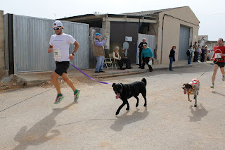 ……La ilusion de poder volver a correr y a sufrir corriendo ,es y ha sido maxima, y algo que ha contribuido mucho a ello, a parte del apoyo de amigos, y familia, han sido los entrenamientos que he realizado con mis dos liebres, Zar y Shirka(dos mastines mallorquines), dos buenos compañeros de entrenamiento que siempre van al ritmo que les digo, sea rapido o lento y no se quejan, quien da mas..je,je ..pues el pasado fin de semana pudimos por fin debutar, ellos en su primera competición y yo en mi reecuentro con la misma, las sensaciones no fueron de lo mas expectaculares, pero lo importante fue el hecho de volver y sentir el sufrimiento,la competicion elegida fue un canicross, modalidad donde el hombre y el perro deben unificar sus ritmos, en la cual disfrutamos todos como enananos ,por el gran ambiente, y a pesar de que el resultado no fue ni mucho lo mas importante, mi caracter competitivo, y el de mi compañero Zar, afloro, y pudimos vencer casi en la foto finsih!!je,je. En definitiva ya estamos de vuelta, y con mas ganas que nunca, en todos los sentidos.